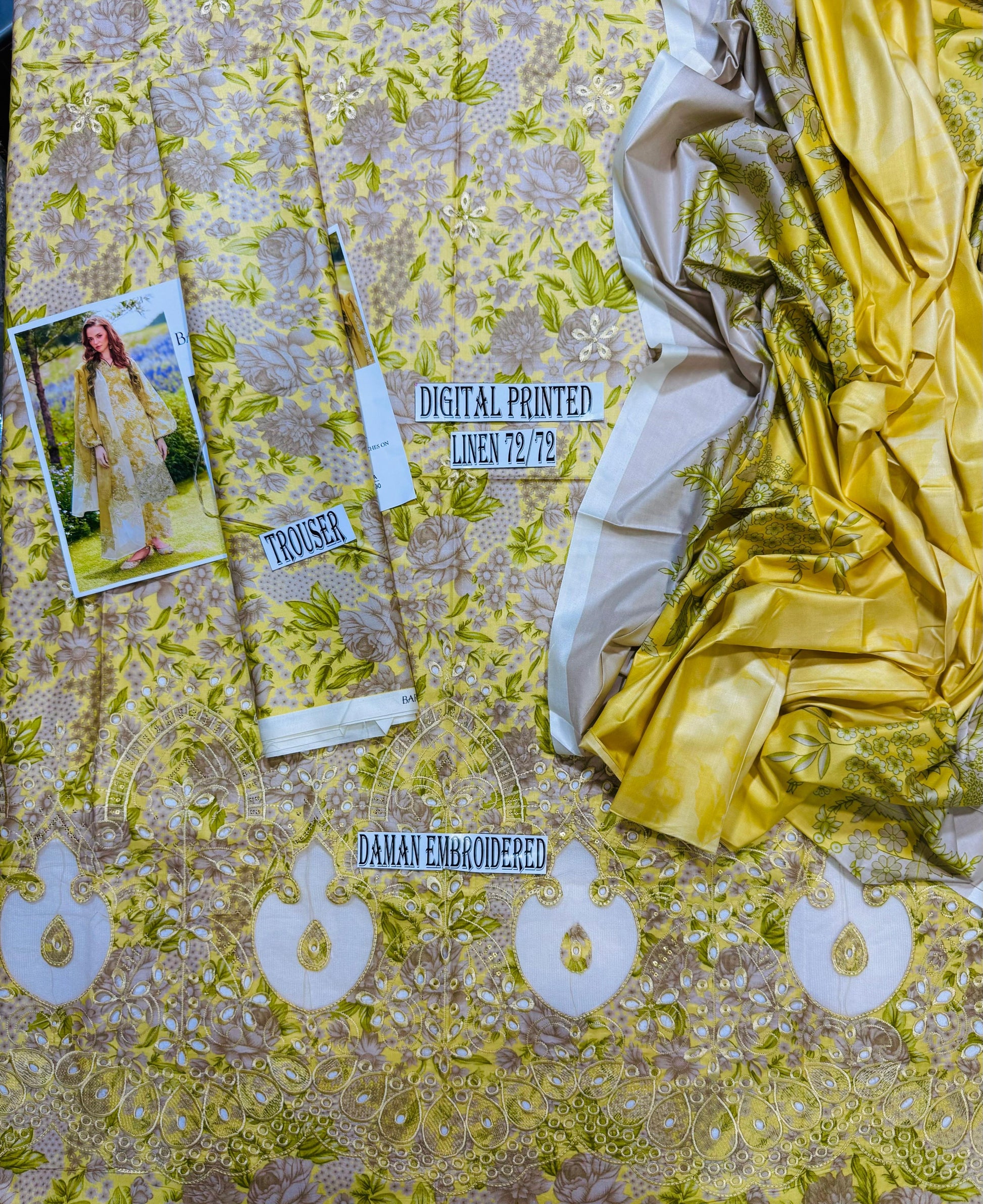 BAROUQE APLIC WORK LINEN UNSTICH 3pc(WA-890)