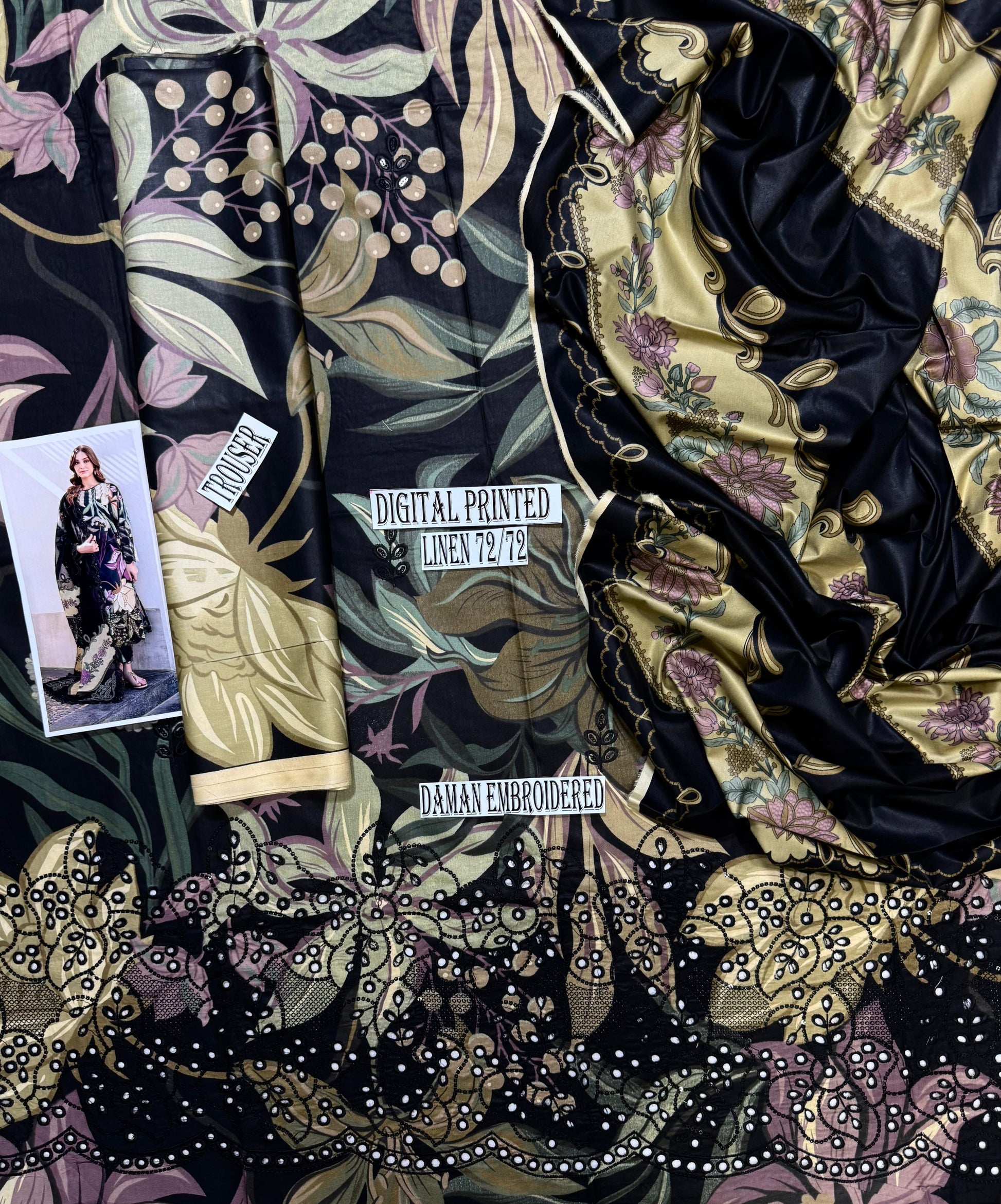 BAROUQE APPLIC WORK LINEN UNSTICH 3pc(WA-550)