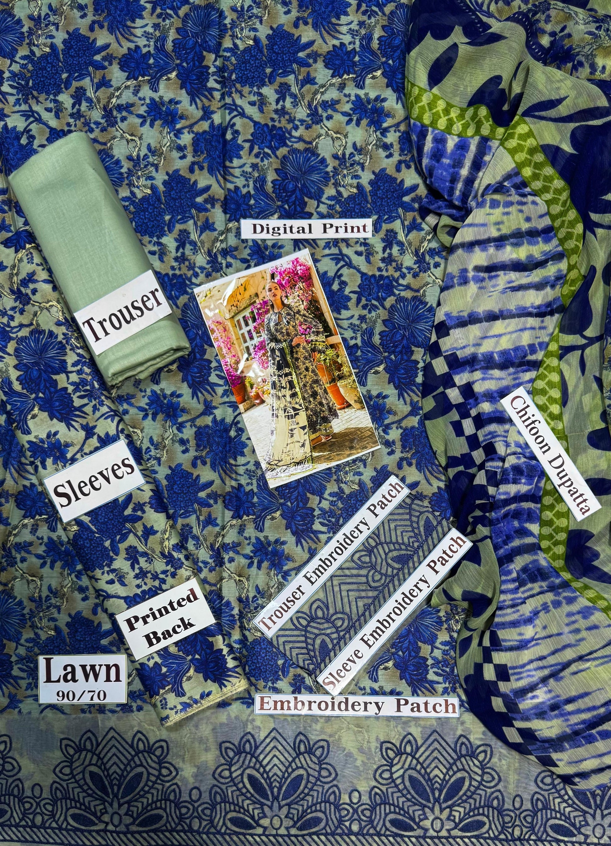 Elaf Premium Print Embroidered Patch 3pc SL-555