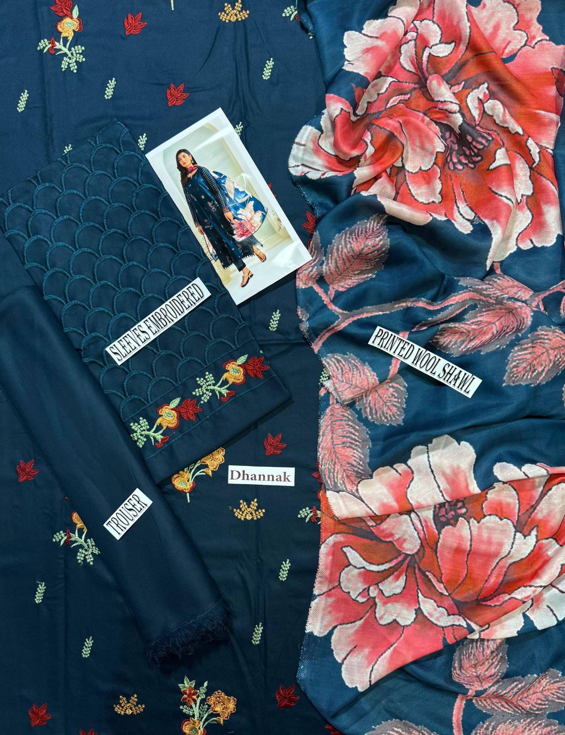 LIME LIGHT-DHANK EMBROIDERD UNSTICH 3pc(WA-558)