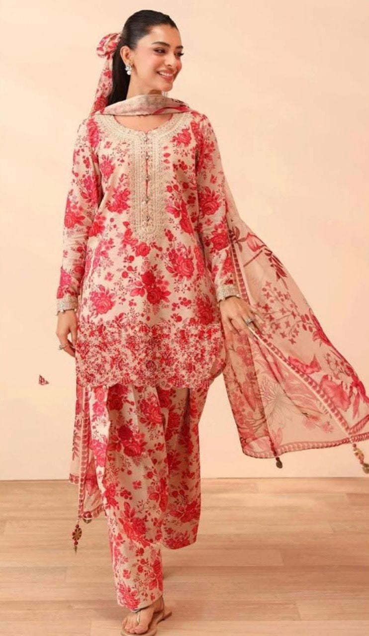 MARIA B-LUXE DAMAN LASER KARI UNSTICHED LINEN 3PC (SL-5347)