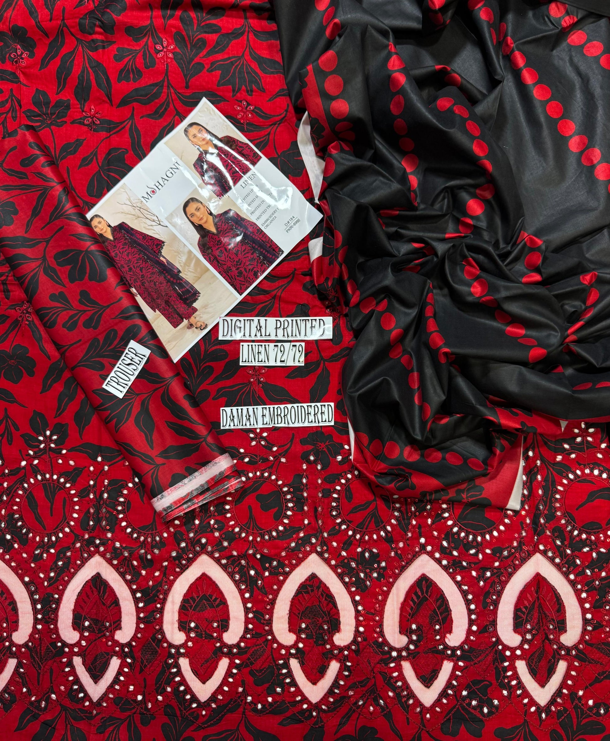 MOHAGNI APLIC WORK LINEN UNSTICH 3pc(WA-980)
