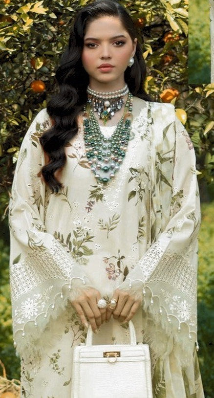 SARDINIA WHITE TULIP-DAMAN BORING PRINTED EMBROIDERED LINEN 3PC (SL-37
