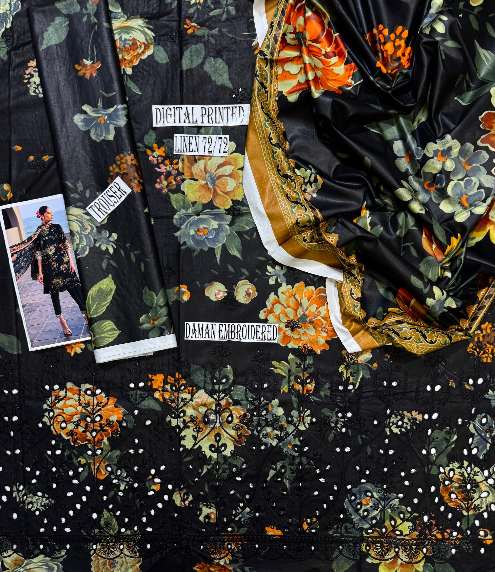 ZAINAB CHOTANI APLIC WORK LINEN UNSTICH 3pc (WA-672)